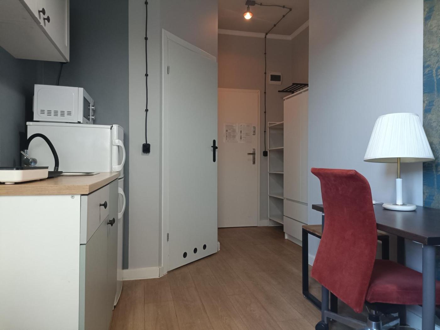 Apartament z 1 sypialnią. The apartment features 1 bedroom, 1 bathroom and a kitchenette. The apartments kitchenette is available for cooking and storing food. The unit offers 1 bed. Apartament - 2 osobowy. Powierzchnia pokoju ok.: 18 mkw.